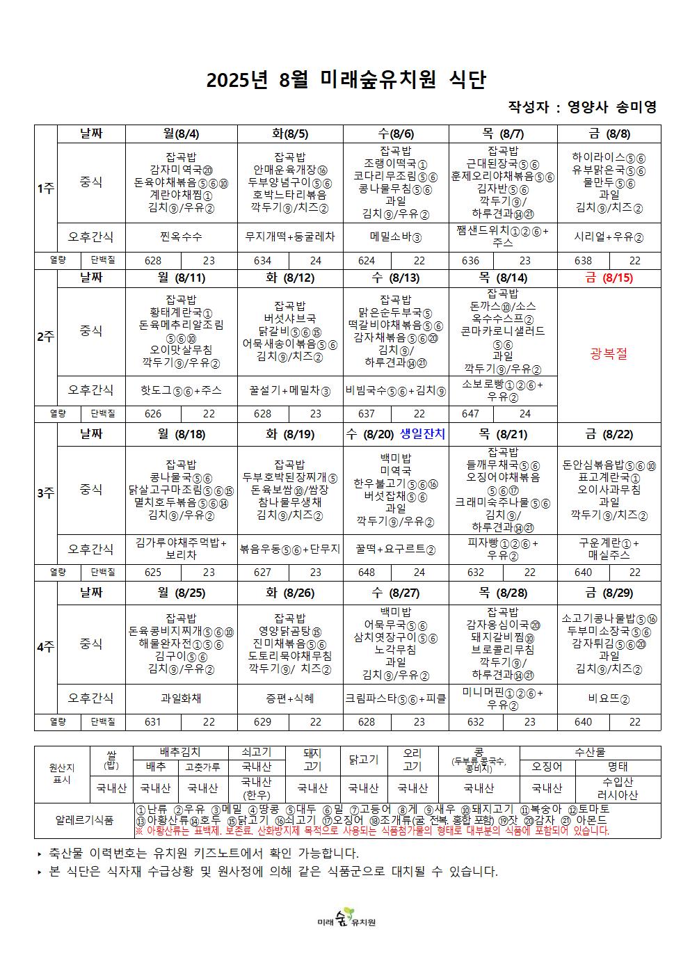 8월식단표